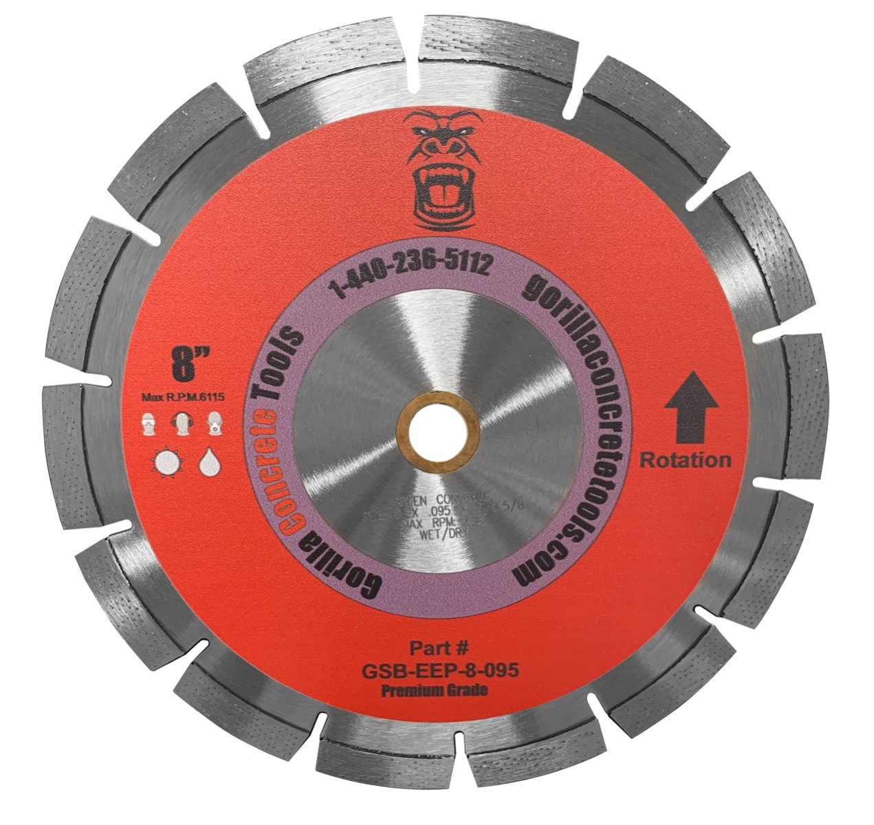 Gorilla GS-300 Early Entry Joint Saw. Versatile and powerful saw designed for the concrete professional. Saw offers cut depths of 1/2" all the way up to 3" in 1/2" increments. Intuitive frame pivot design allows blade to be left on saw during transport. High-torque variable speed electric drive system propels saw smoothly and consistently. Linkage operated front pointer arm allows operator to retract pointer arm when terminating cuts. Up-cut saw design partners with a spring-loaded skid plate to prevent raveling. Ergonomic handle design aids in operator comfort. Centered lifting hook for easy loading and unloading.