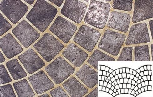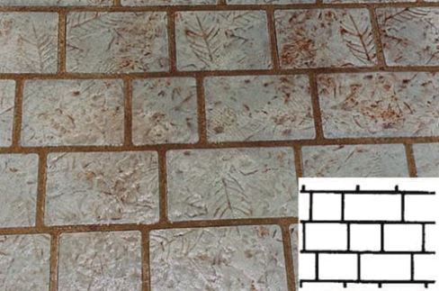 Concrete Stencils, Adhesive Backed Concrete Paper Stencils for Concrete Floors and Walls. Used in conjunction with sprayable overlay products such as SureSpray, these stencils and tapes can be excellent tools to create unique looks and architectural feature including concrete brick stencil rolls.