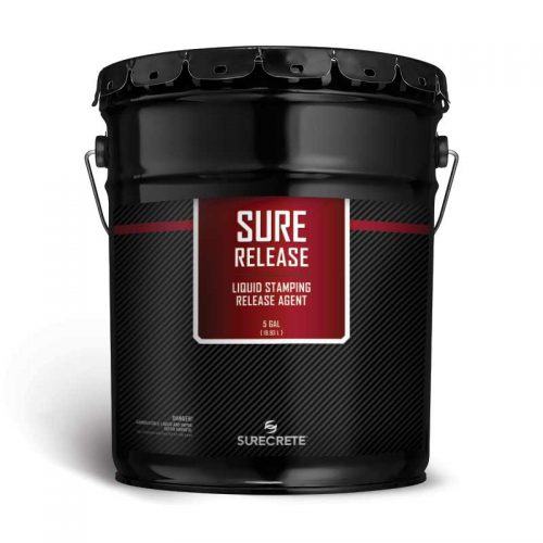 SureCrete's SureRelease concrete liquid release for stamping concrete it is a colorless, bubblegum scented petroleum distillate formulated to release any decorative imprinting tool from concrete or polymer modified cementitious topping. SureRelease provides a lubricating barrier that protects and prolongs the life of stamping mats also.