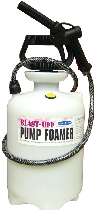 Nox-Crete’s Perfect Pump Foamer is a heavy-duty polypropylene tank and gun specifically designed to produce a rich foam that clings to vertical surfaces. When used properly, the Perfect Pump Foamer maximizes performance of Kem-Ex-It Plus and Blast-Off Concrete Buildup and Splatter Remover.