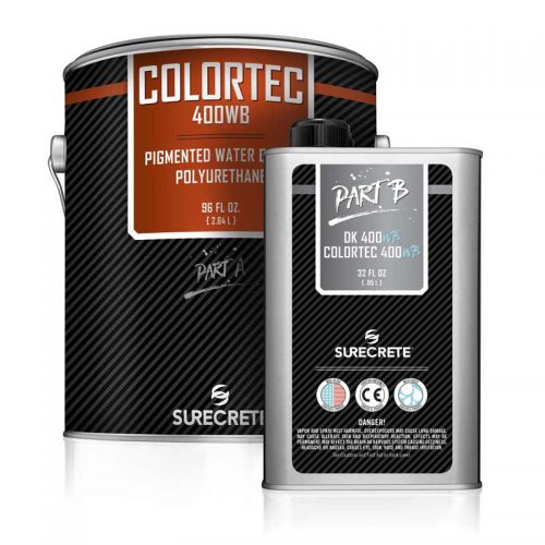 SureCrete's water based colored floor polyurethane coating is a 2 component 57% solids, acrylic polyurethane designed as a non-yellowing thin mil color coating for concrete, cement-based overlays, or as a top finish coat on epoxy systems. The high performance pigmented top coat provides the durability in high traffic areas as solvent base system with the ease and safety of a low VOC (73 g/L) water base system. Unlike nearly all polyurethanes, Dura-Kote Colored Polyurethane WB has remarkable properties related to vapor permeability that permit its use in an exterior setting. Generating the premier balance of strength, added UV stability, flexibility, chemical and scratch resistance, it is both user-friendly and extremely durable.