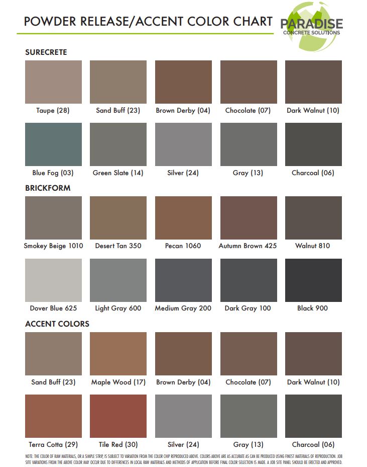 Powder Release and Accent Color Chart