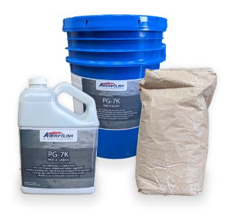 Ameripolish® PG-7K is a fast-setting, polymer-modified, high-strength cement with outstanding bonding properties formulated specifically to fill in small cracks, pinholes, and surface irregularities in concrete floors. It also increases durability, gloss and distinction of image (DOI) on most floors. PG-7K readily accepts Ameripolish® concrete dyes and requires no special polishing procedures. Ameripolish® PG-7K Part A – Powder must be used with PG-7K Part B – Liquid.