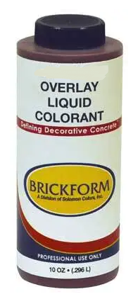 BRICKFORM Overlay Liquid Colorant is UV resistant and manufactured to strict standards to ensure color uniformity and consistency. BRICKFORM Overlay Liquid Colorants are non-hazardous water-based formulations providing easy clean up and no hassle shipping. BRICKFORM Overlay Liquid Colorant is available in 39 standard colors, packaged in 10 oz. bottles.
