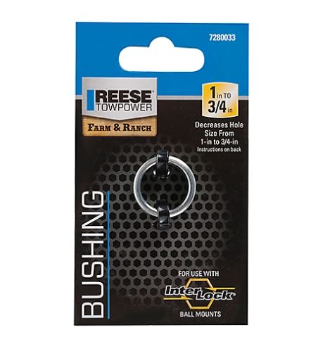 The Reese Towpower InterLock Hitch Ball Reducer Bushing allows 3/4-in shank hitch balls to be used with ball mounts that have 1-in shank holes. This reducer bushing is designed to work with Reese Towpower interlock ball mounts. The hitch ball reducer bushing is made from steel for strength and reliability. The reducer bushing measures 5 in. H x 2.875 in. L x 0.625 in. W.