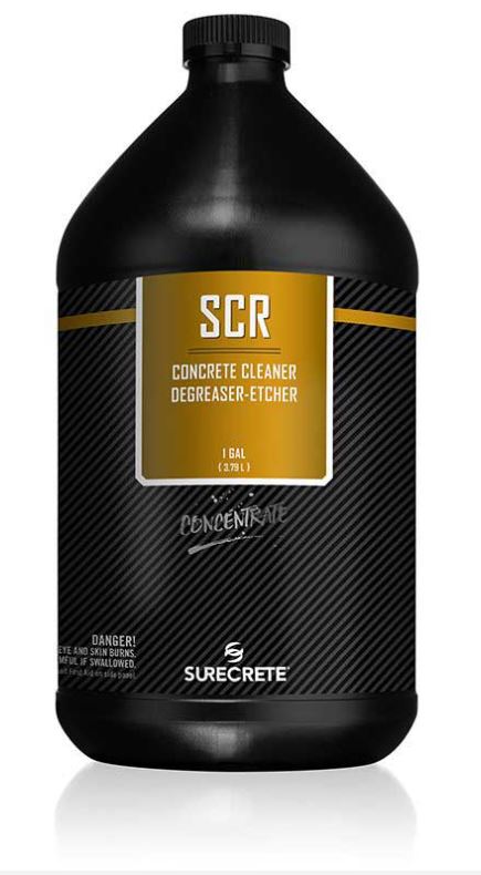 Concentrated concrete cleaner, Super Concrete Renovator (SCR™) is an eco-friendly 3-in-1 cement and brick paver cleaner. SCR™ brings a powerful, degreaser, and etcher which is a safe alternative to muriatic acid. SCR worked by the solution going into the pores of the concrete and bubbling the impurities out to and rinsed away. Application in this situation is 1-1 or 2-1 (part water to part SCR). Even though SCR is a powerful concrete cleaner, it has been designed not to hurt the landscaping. SCR can aid in removing dirt, efflorescence, mold, mineral deposits, rust, and works well to lighten and remove oil and gasoline stains. Cleaning your concrete driveways, sidewalks, patios, porches, pool decks, patio cleaner, sand pavers, and landscape edging has never been easier and more cost effective when using SCR to bring your concrete back to life.