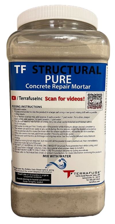 Typically installed as a stand-alone overlay for concrete substrates, it provides an economical solution that has excellent abrasion resistance properties and very good durability against mechanical damage. TF Structural Pure is used for spall repairs, complete resurfacing, large structural rebuilds, or anywhere damaged concrete is in need of repair.