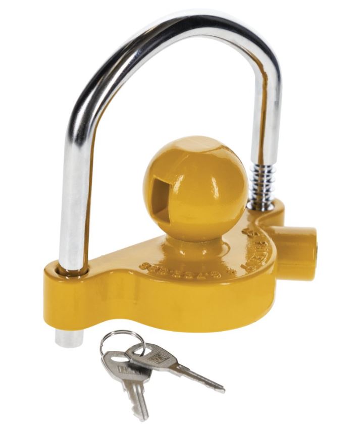 This REESE Towpower universal coupler lock prevents theft and keeps your trailer secure. The bright, yellow color is highly visible and deters thieves. It features a ratchet design with six locking positions for versatility, and is designed to fit 1-7/8 In., 2 In., and 2-5/16 In. couplers.